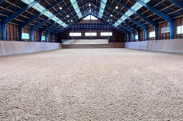 Ridhuset som är byggt i lärkträ, mäter 20 x 60 meter och är försett med ett generöst